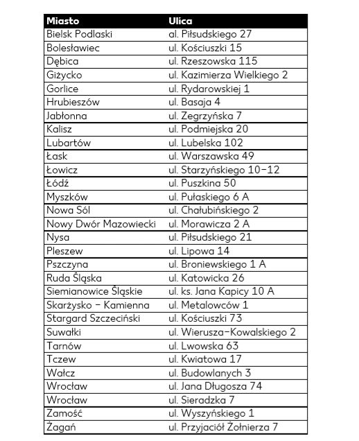 Lista sklepów, w których można skorzystać z usługi DHL Parcel
